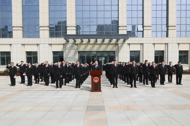 国旗飘扬映法徽 忠诚铸魂庆华诞——濮阳中院举..