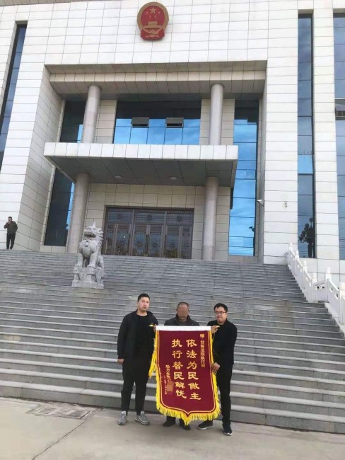 在我院执行干警的调解下,双方达成和解协议。拿到钱后,刘某非常激动,为表示感谢,连夜制作了印有“执行替民解忧 依法为民做主”的锦旗送至台前县法院执行局。