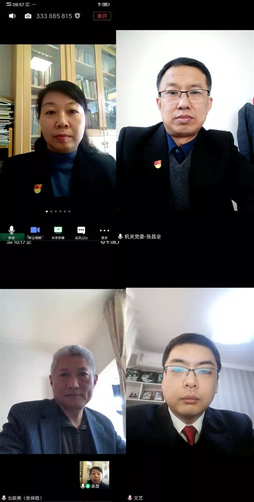 濮阳中院装备处、立案一庭、审管办成立的临时党支部通过视频会议形式开展了“在疫情阻击战中发挥党员先锋模范作用”主题党日活动,特别邀请机关党委组织委员高洪光、民主建国会会员、市政协委员赵洪波参加本次活动。
