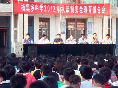 9月4日下午,在杨集乡中学操场上,范县人民法院的法官为600余名学生上了一堂别开生面的法制课。法官结合近年来校园青少年违法犯罪案例,深入浅出地向学生们宣讲了相关法律法规知识,告知同学们如何加强对犯罪的自我防范,怎样增强辨别是非和自我保护能力,通过讲述两抢一盗、故意伤害、敲诈勒索、聚众斗殴案例,提醒广大学生如何做到“三个远离”,即远离不文明网络行为,远离不良生活习惯,远离不良身边人。通过宣传教育活动,同学们从中受到了启发和教育,帮助其树立了正确的人生观、价值观。
