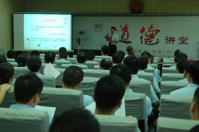 道德讲堂围绕“唱一首歌曲,学一句格言,讲一个故事,诵一段经典,作一番感悟”等六个环节进行,通过聆听道德故事,沐浴道德洗礼,品悟道德力量。一首《好人一生平安》唱出了法院干警的心声和豪迈;《诗经·邶风·击鼓》中“死生契阔,与子成说;执子之手,与子偕老”,让大家深刻理解了“身边好人”我院干警张志君爱人王瑞红的感人事迹,从宣讲员讲述中感受她面对突患重病丈夫多年不离不弃的浩荡亲情,见证她任劳任怨、默默无闻照顾丈夫的惊人壮举;国学经典《阴骘文》中“积善之家有余庆,积不善之家有余殃”更引起干警的静思冥想;几名法官谈感触、话体会,畅谈对道德内涵及道德模范的理解和感受,说出了大家的共同心声,形成了心灵互动、道德共鸣的良好效应。全院干警决心以开展“道德讲堂”活动为契机,拓展道德建设的内容和形式,弘扬“我为人人、人人为我”的社会道德风尚,积极践行政法干警核心价值观,创新观念,改进作风、提升素质、努力工作,把道德理念内化于心、外化于行,争做公民道德建设和实践的表率,推动形成知礼守信、勤政廉洁、公正司法的司法环境,用实际行动为富裕和谐美丽新濮阳贡献力量。