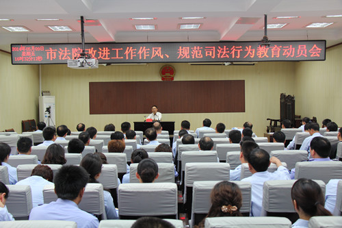 5月9日下午,濮阳中院在二号审判庭召开“改进工作作风、规范司法行为”动员会。会议由院党组成员、政治部主任赵军主持,党组书记、院长王凤兰作了动员讲话。