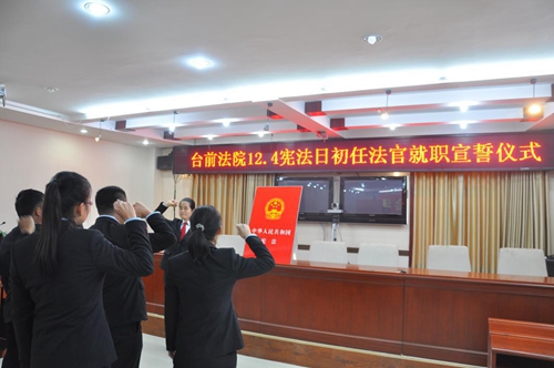 12月4日是国家首个宪法日,为维护宪法权威,恪守宪法赋予的职责,台前县人民法院集中组织了初任法官就职宣誓仪式。7名身着法官服、胸佩法徽的初任法官面向中华人民共和国宪法庄严宣誓,对忠实执行宪法和法律,全心全意为人民服务,公正廉洁司法,自觉接受监督,作出郑重承诺。