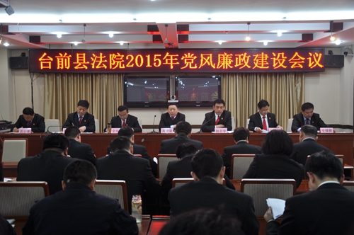 3月31日,台前县人民法院召开2015年党风廉政建设会议,院党组成员及全院干警参加会议,会议由院党组副书记、常务副院长赵志学主持。