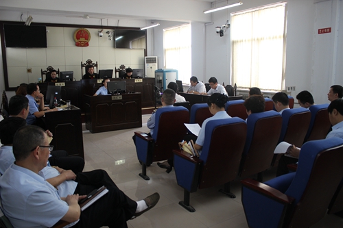 5月28日上午,濮阳市中级人民法院副院长马长虹等一行七人组成的“两评查”评查组莅临范县人民法院检查观摩庭审,县法院常务副院长赵守国、审管办副主任程善磊等陪同。