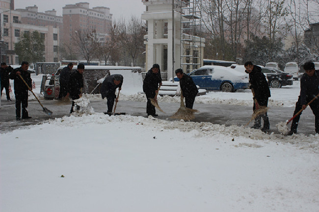皑皑白雪虽然美丽,一旦踩轧结冰,对法院干警的出行和当事人的诉讼有很大的影响,清理积雪势在必行。在韩院长的带领下,全院审判员、书记员、法警齐、院领导上阵,干警们顾不上打伞,任雪花飘落在自己的身上,一个小时后,铲除了法院大门前以及院内的积雪。看着当事人在清理后的道路上安全行走,干警们由衷的感到欣慰。