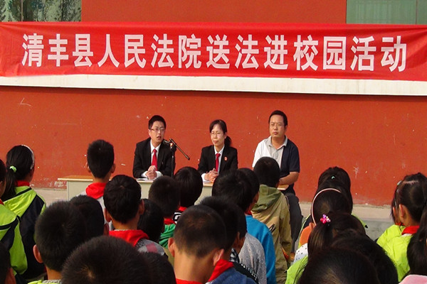 今年9月份以来,清丰县人民法院积极延伸工作职能,以加强青少年法制宣传教育和提高广大教师依法执教、依法治校意识为重点,组织干警深入全县17个乡镇40余所中小学,通过多种形式主动化、常态化地开展“送法进校园”活动,掀起了青少年法制教育新热潮,为“平安校园”、“法制校园”建设营造了浓厚的法制氛围,真正实现了青少年学生法制宣传教育无缝隙、全覆盖。