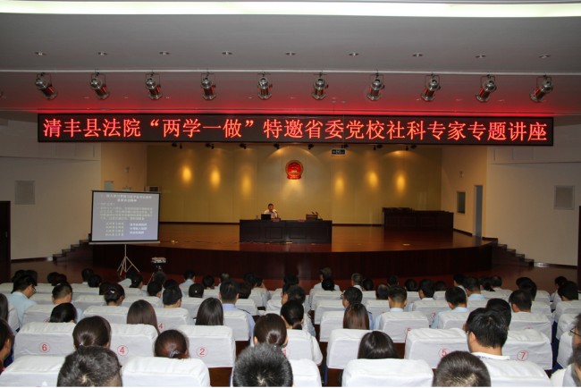 为深入开展“两学一做”学习教育,进一步增进对学习教育的理解和认知,切实转变作风、推动工作,8月26日下午,清丰县法院在二楼审判庭举办“两学一做”辅导讲座,特邀河南省委党校科社教研部主任田宪臣教授授课。会议由该院党组书记、院长韩军同志主持。全体干警参加了辅导会。