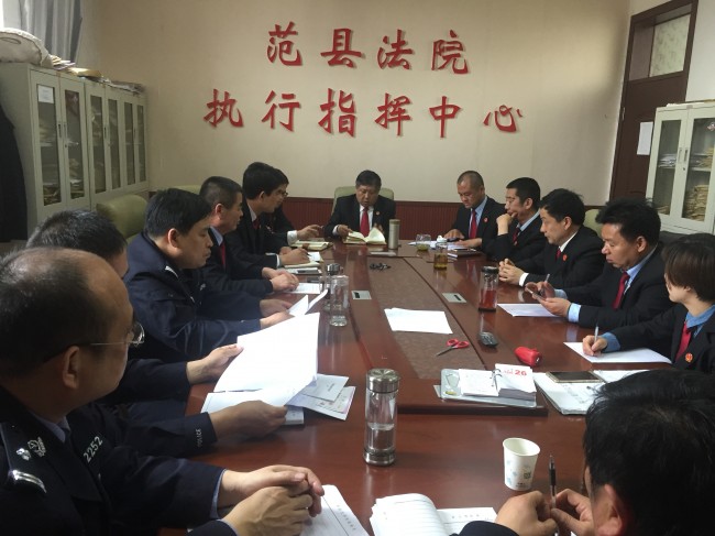 4月13日上午,濮阳中级人民法院市党组成员、工会主席孙海涛一行四人到范县法院专项督导执行工作。