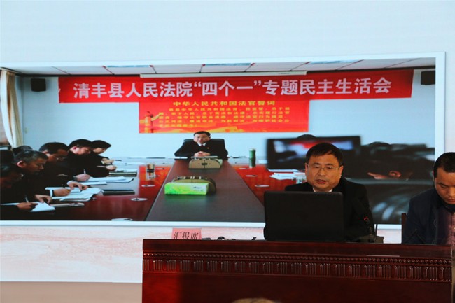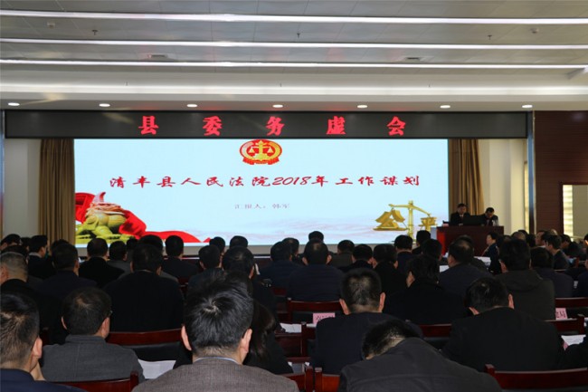 11月28日下午,清丰县法院党组书记、院长韩军在县委务虚会上用PPT形式汇报了县法院2018年工作谋划。县四大班子主要领导听取了汇报,各乡镇和县直单位负责人参加会议。