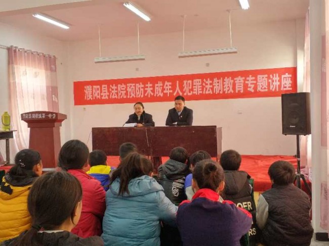 为提高青少年学生的法律意识和安全防范意识,按照濮阳县开展青少年法制教育活动的实施方案要求,11月28日下午,濮阳县法院选派法官到濮阳县胡状镇第一中学开展“送法进校园”活动,向师生们讲授以“预防未成年人犯罪”为主题的法制课,100余名师生到场聆听了授课。