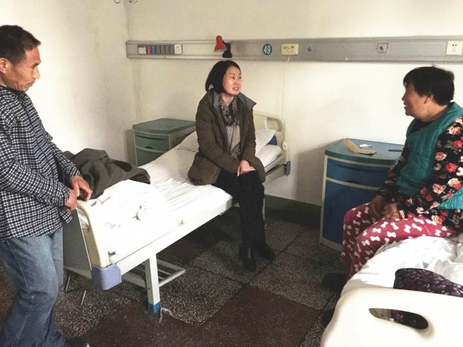 12月20日下午,濮阳县法院党组书记、院长石文英在走访慰问贫困户时,得知其帮扶对象李彦垒的妻子张素革因病住院,立即驱车赶往油田职工医院,亲切探望病人并送去慰问金。