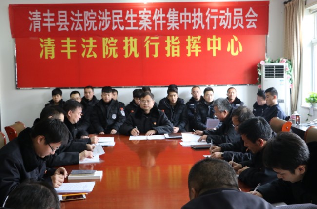 12月30日上午11点,清丰法院在执行指挥中心召开元旦春节期间涉民生案件集中执行活动动员大会。党组成员、副院长赵彦景主持会议,执行局、法警队全体和刑事审判、办公室、政治处部分同志共40余人参加会议。党组书记、院长韩军作动员讲话。